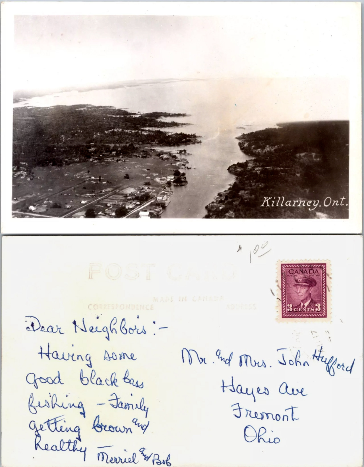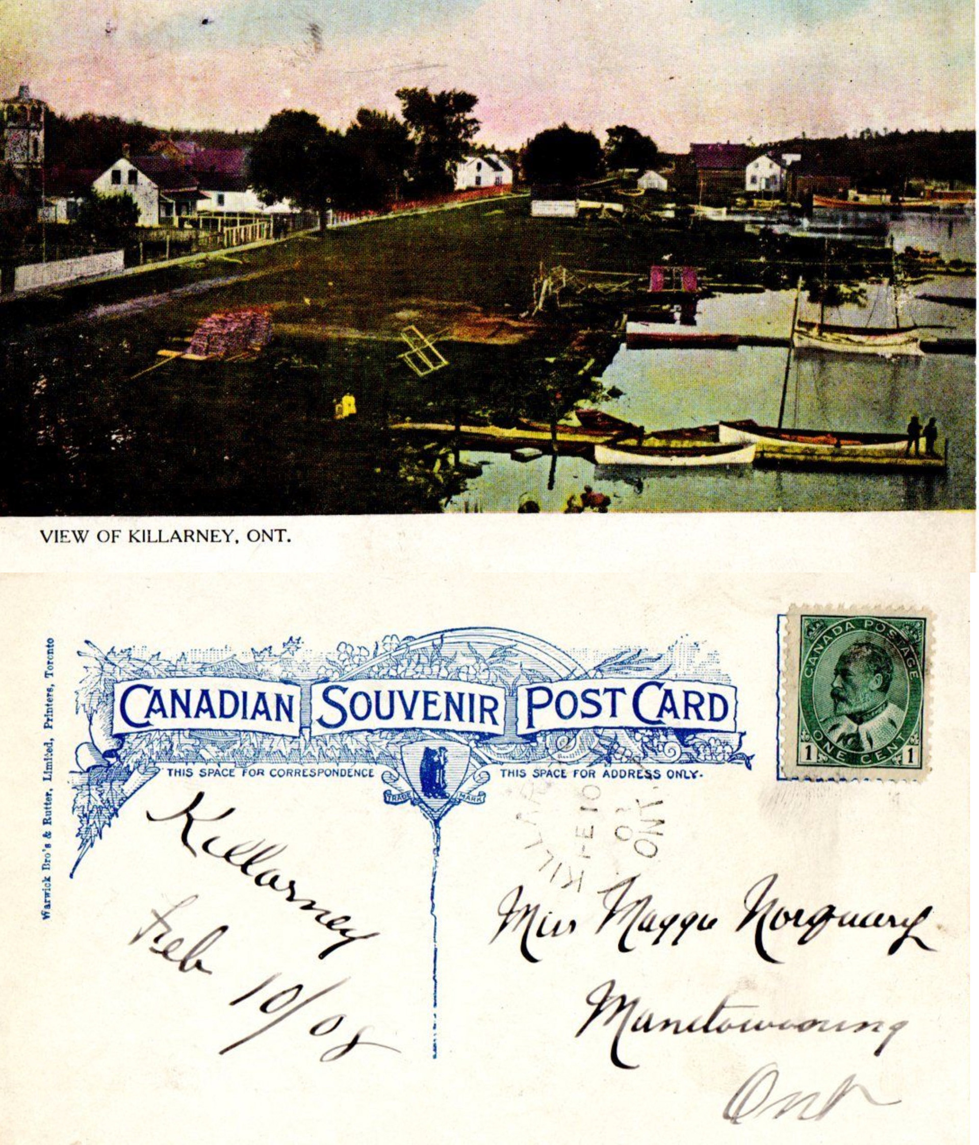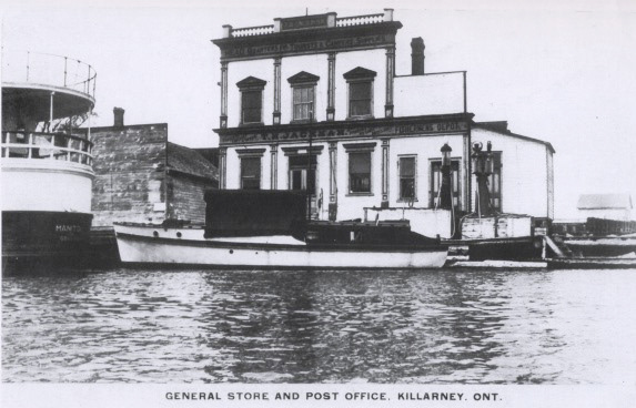 The development of Killarney as a port was a legacy of the lumber era. Many ships docked there both to pick up lumber and to deliver supplies. After 1875, a regular scheduled run between Killarney to Owen Sound was set up. The presence of the scheduled run to Killarney, and from Killarney to market, did much to encourage both the tourist and fishing industries of the area. It must be remembered that no railway has ever served Killarney, and that the road which now connects the town with highway 69 was opened only in 1961.
